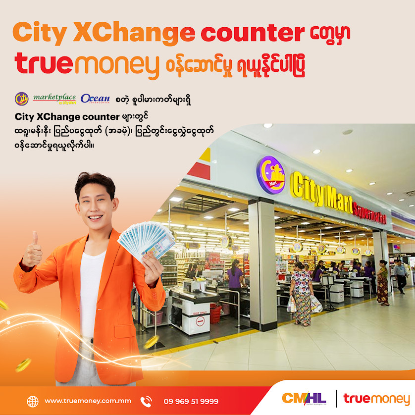 CITY XCHANGE counter တွေမှာ TrueMoney ဝန်ဆောင်မှုရယူနိုင်ပါပြီ